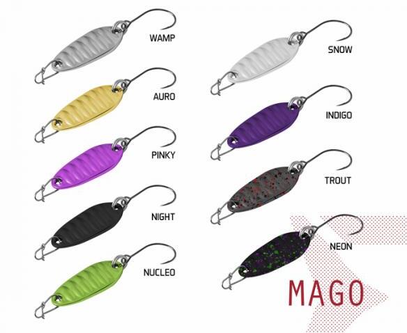 A Delphin MAGO villantó termékcsalád ideális műcsali a pisztrángos (Trout Area) horgászterületein. Testük cink ötvözetből készül. Minőségi BOMB! egyeshoroggal vannak felszerelve HardLure szakállal és FASTLOCK MICRO SNAP karabínerrel, hogy nehogy elveszítse fogását. A pisztrángon kívül nem vetik meg a tavakban vagy patakokban még kisebb ragadozó halak sem. Az a tény, hogy nagyon csábítóak a ragadozók számára, már az első pillantásra látható. A Mango villantóknak szimmetrikus formájuk van hullámokkal, amely tökéletesen utánozza az élő csalit.